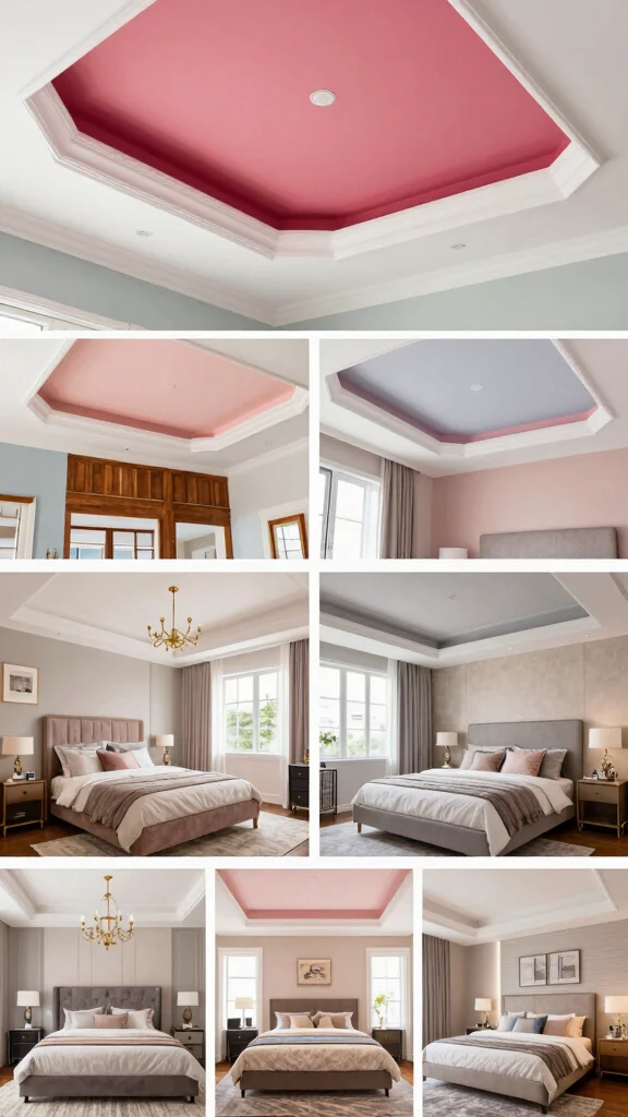 Explore Various Designs: Discover how soft pastels, bold colors, and wood accents can completely change the feel of your master bedroom ceiling.