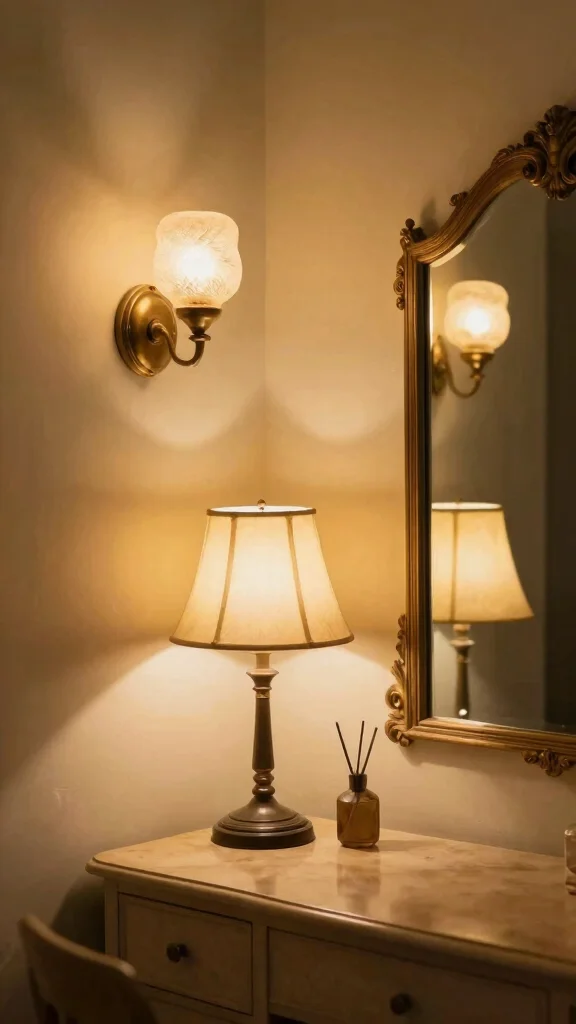 Consider placing vintage table lamps on your vanity or stylish wall sconces beside a mirror for layered lighting. This approach not only adds charm but also provides practical illumination for daily routines.