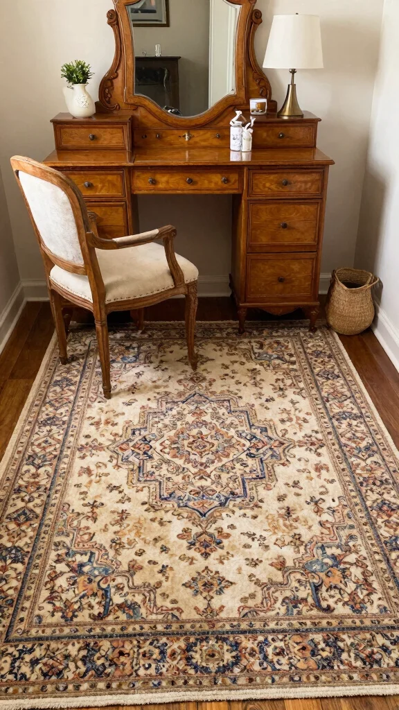 A vintage-style rug not only enhances decor but also makes your dressing room feel warmer and more inviting.