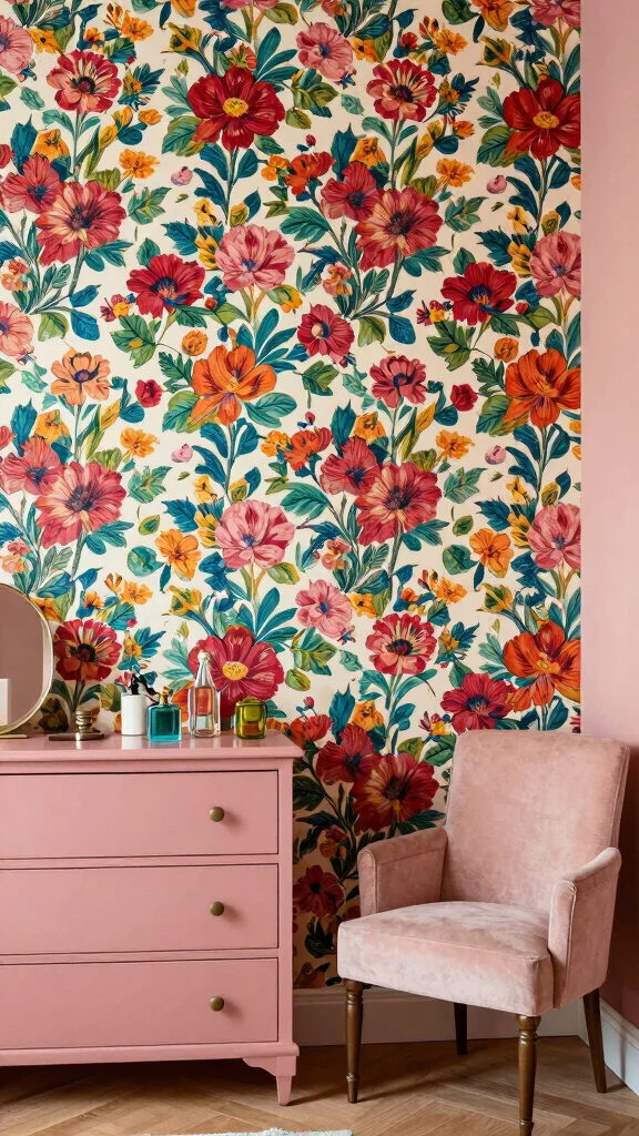 – Accessorize with vintage pieces that echo the wallpaper design.