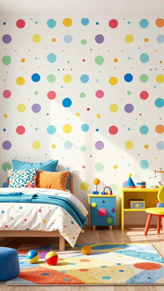 Opt for removable wallpaper that can be easily changed as your child grows. Varying sizes of dots can add visual interest and excitement to the walls.