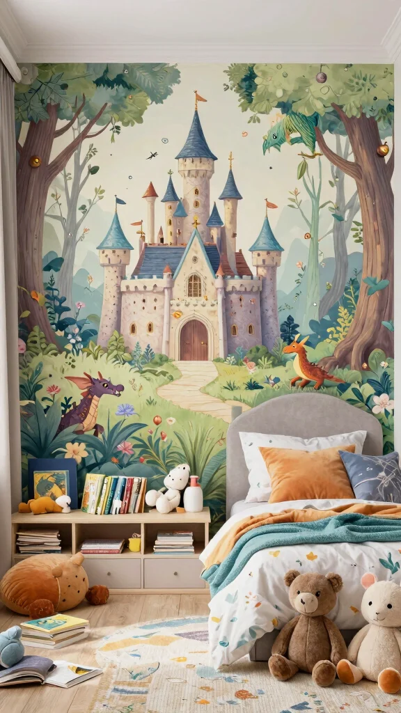Look for removable wallpaper that can be updated as your child’s interests evolve. A feature wall with the castle design can keep the rest of the room balanced and visually appealing.
