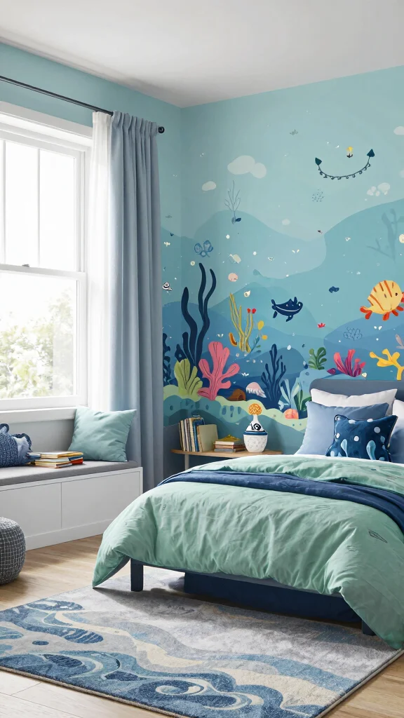 Bedtime becomes an ocean adventure with underwater wallpaper for kids bedroom. Eco-friendly materials keep it safe, while calming blues help little dreamers drift off faster and wake up ready to explore.