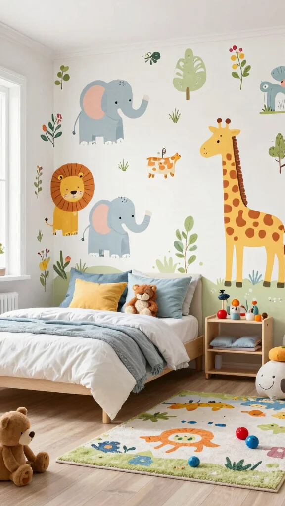Choose washable wallpapers that can endure everyday life. Removable options allow for theme changes as your child grows.