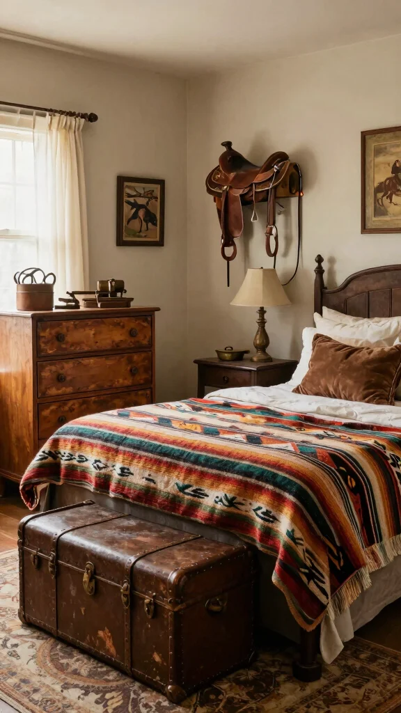 Fun fact: Homes with vintage Western accents see a 38% rise in cozy-factor, especially when you mix a weathered dresser with Southwestern textiles. Try layering patterns for your western master room bedroom ideas.