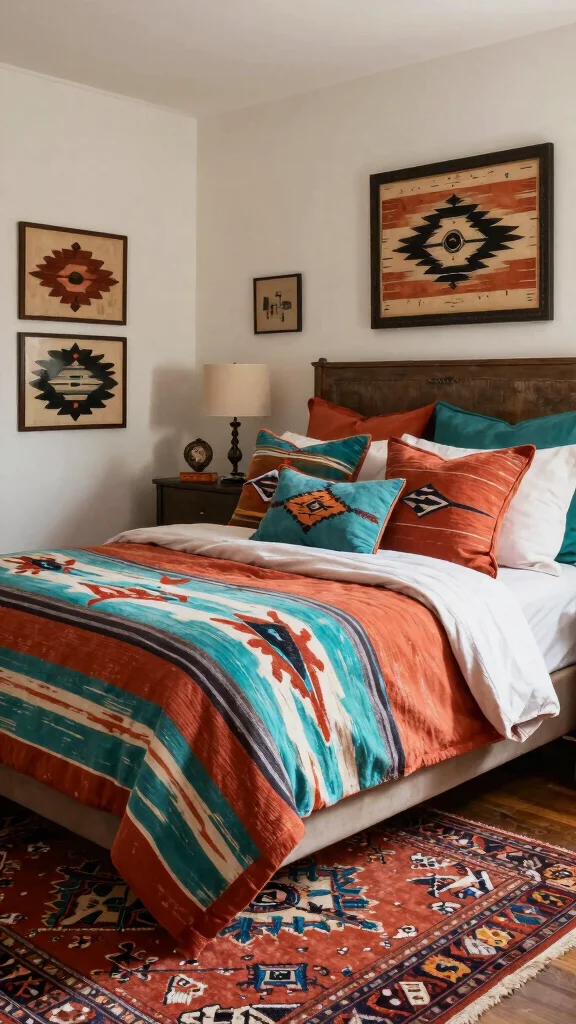 This approach enhances the character of your bedroom while celebrating the vibrancy of Southwestern design.