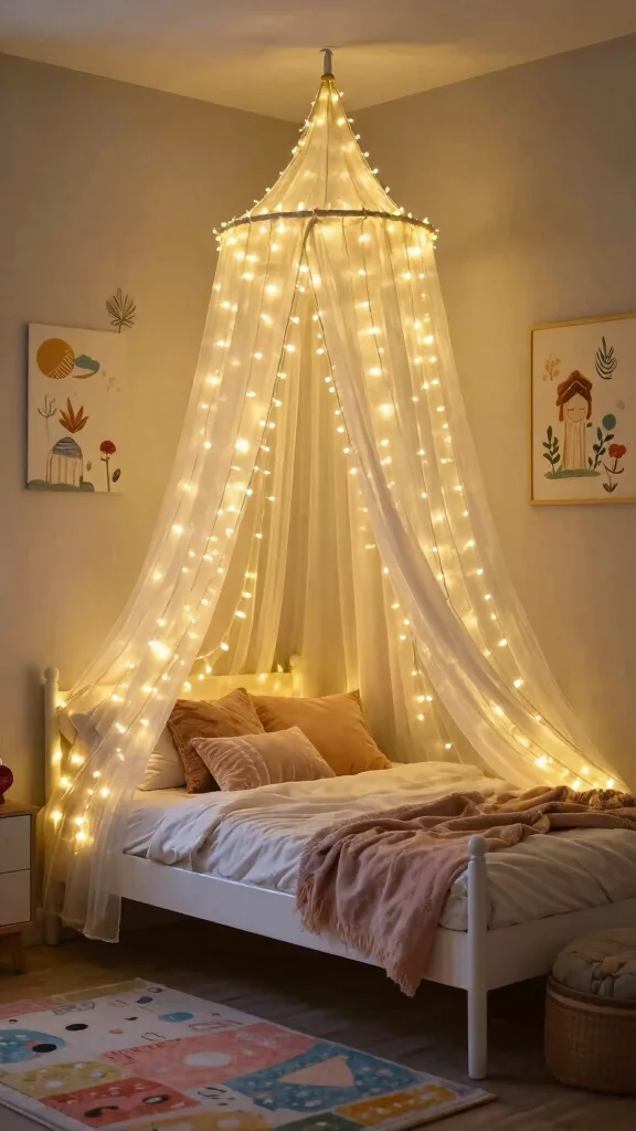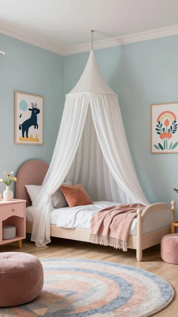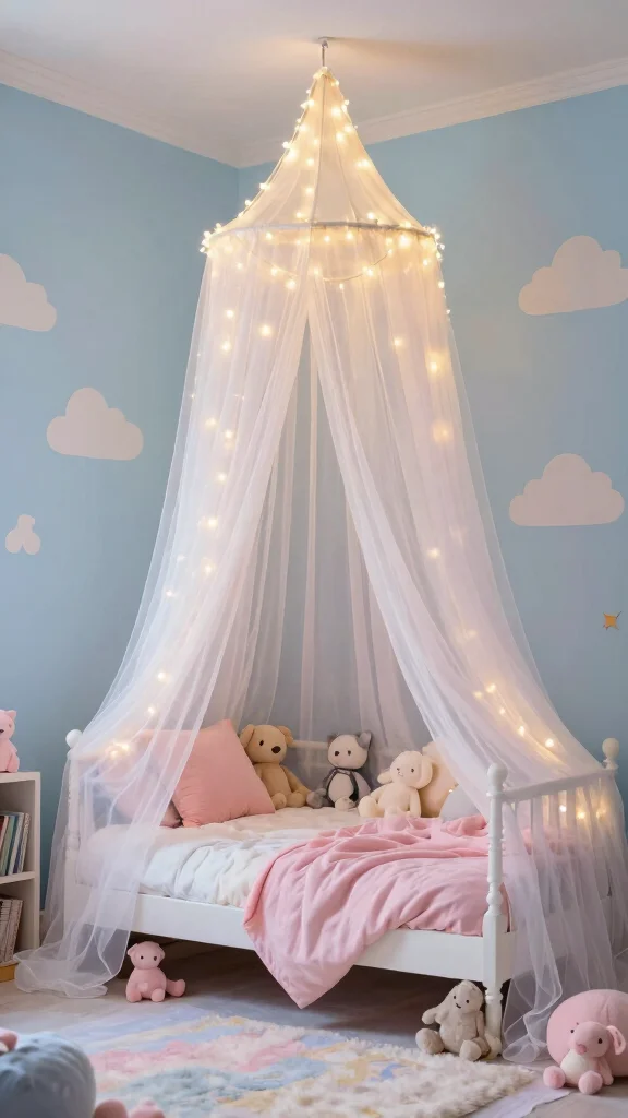 Imagine a child’s bed enveloped in soft, flowing fabrics, instantly transforming the room into a fairy tale retreat.