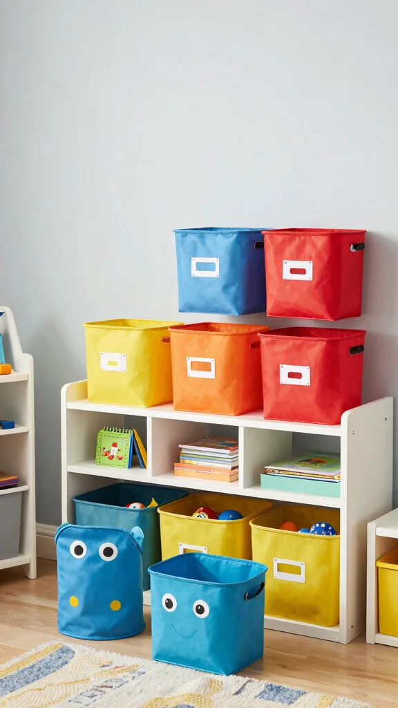 – Use bins shaped like animals or vehicles to make organizing enjoyable.