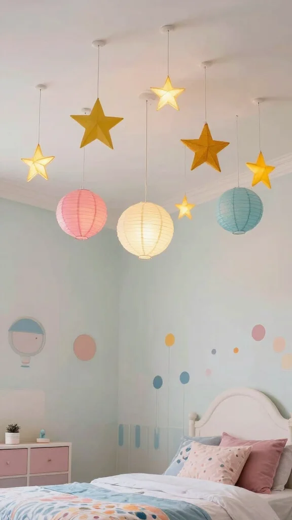 – Hang stars, paper lanterns, or fabric clouds to enhance the magical vibe.