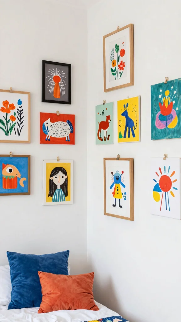 – Mix framed art, canvas prints, and DIY projects made by your child.
