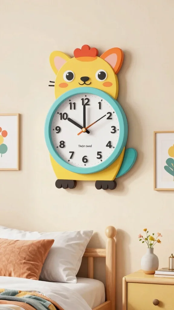 – Select clocks that fit the room’s theme, such as animal shapes or bright colors.