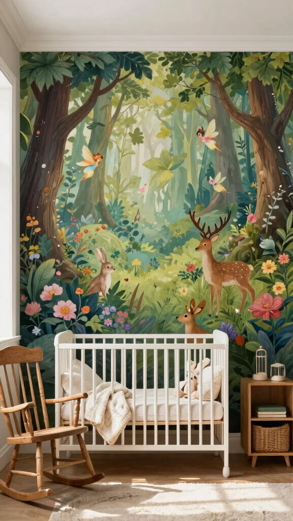 As you plan your mural, think about how to create a harmonious look. Pair it with natural wood furniture in soft tones to enhance the woodland vibe, ensuring a seamless flow throughout the nursery.