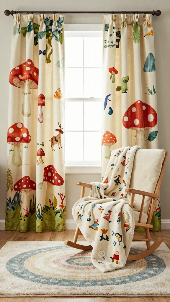 Textiles are essential in adding warmth and whimsy to your nursery. Look for curtains, rugs, and blankets that feature playful patterns like mushrooms, fairies, or woodland animals. Mixing and matching various textiles can create depth and interest, transforming your nursery into a vibrant haven.