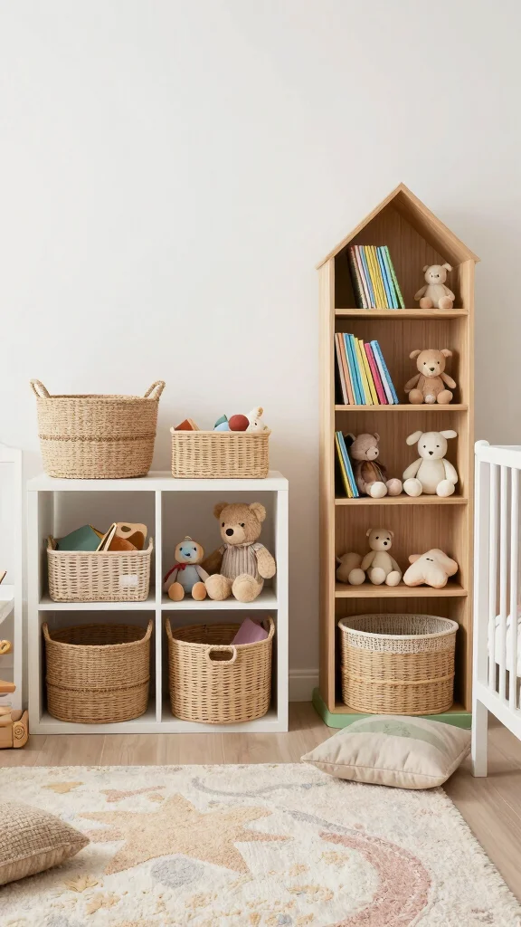 – Creative Storage Solutions: Implement playful storage options that keep the nursery organized while adding to the whimsical decor, making cleanup a breeze.