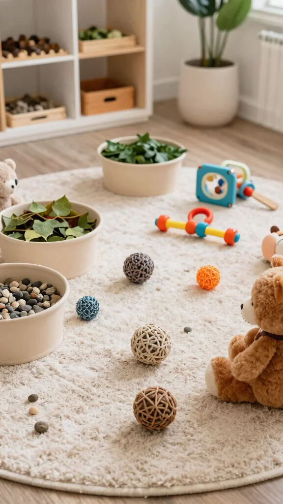 – Layer rugs for added texture; a soft rug underfoot can make playtime more enjoyable.