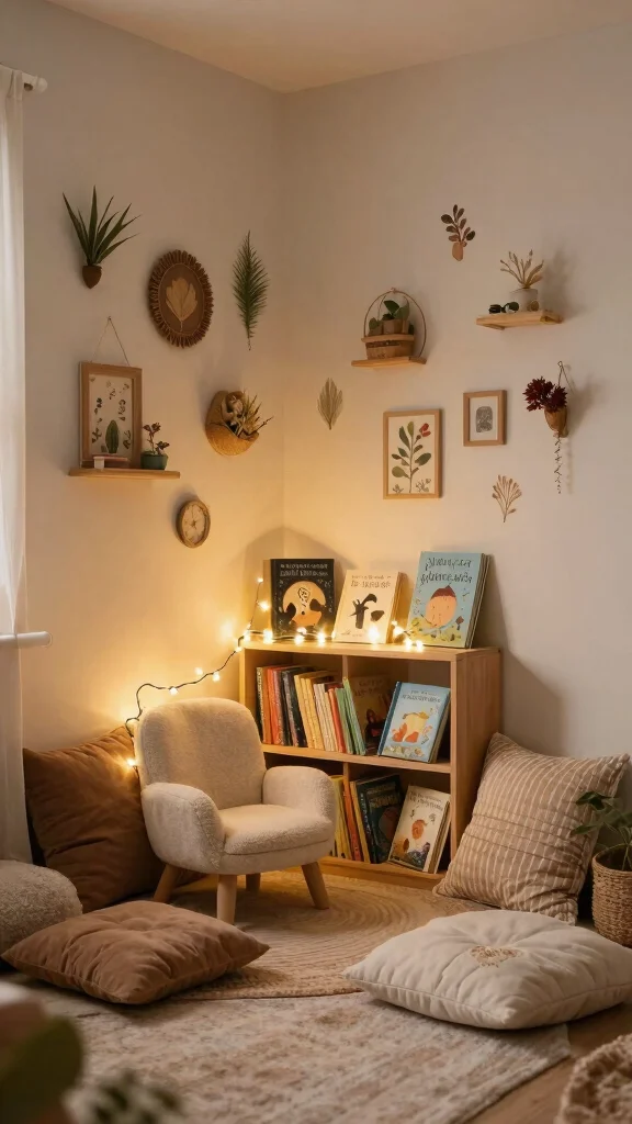 Add fairy lights or lanterns to create a warm glow, enhancing the inviting atmosphere that encourages exploration and quiet moments.