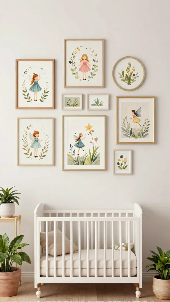 Infuse personality into your nursery with whimsical wall art that embraces the woodland fairy theme. Look for prints that showcase fairies, woodland animals, and beautiful flora to create a vibrant and inviting space. A gallery wall featuring a mix of framed art, canvas prints, and fabric hangings can add a personal touch while maintaining the enchanting aesthetic.