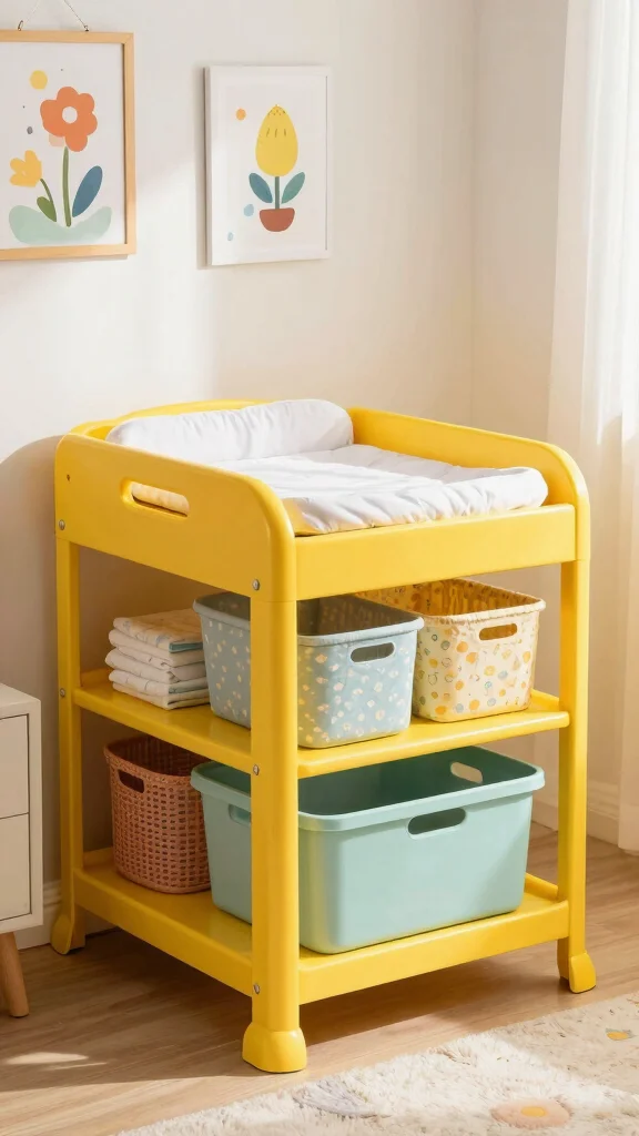 Consider a yellow changing table or bookcase that keeps essentials easily accessible while adding a playful flair. When selecting furniture, prioritize pieces crafted from sustainable materials to ensure a safe environment for your baby.