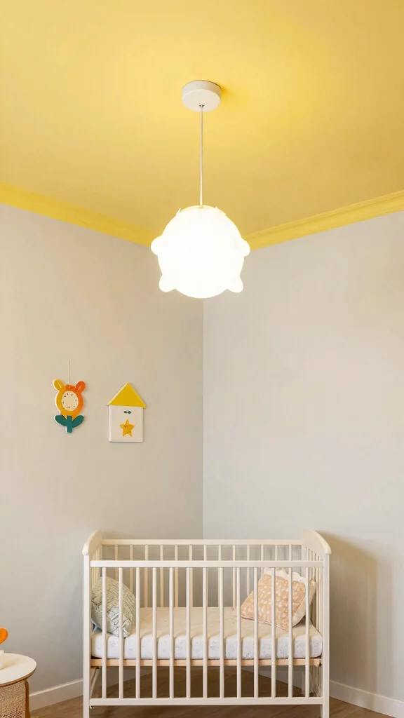 Consider integrating playful light fixtures that enhance the ceiling’s brightness and align with your nursery theme. This creative detail sparks joy and wonder in your baby’s environment.