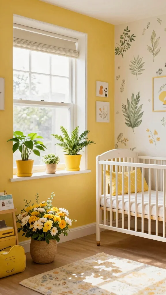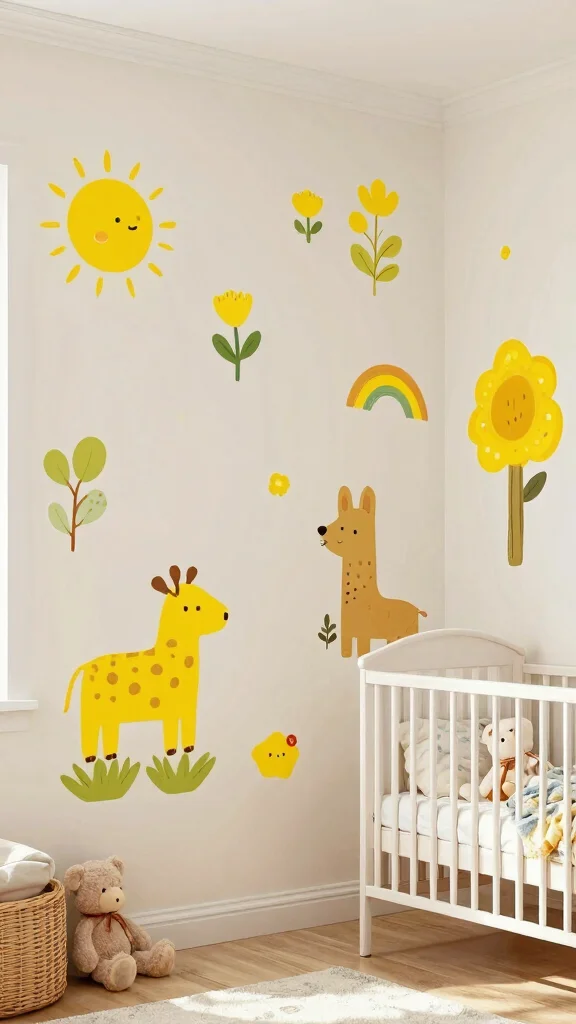 Brighten your walls with yellow-themed decals that infuse personality and fun into your nursery. These removable stickers can feature playful designs, from animals to beautiful flowers, making it easy to refresh the look as your child grows. Look for eco-friendly options made with non-toxic materials to ensure safety for your little one.
