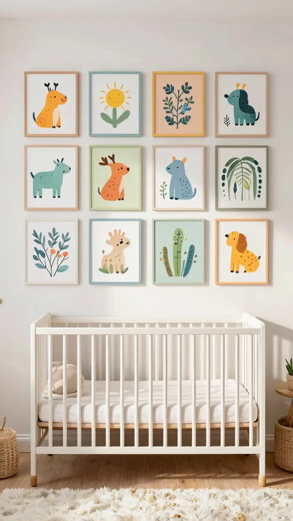 Brighten your nursery with sunny wall art that radiates joy and creativity. Select artworks featuring whimsical themes, such as animals, nature, or abstract patterns in yellow and complementary colors. These pieces can serve as visual stimulants for your little one, sparking their imagination and curiosity.